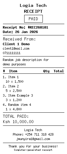 - 1. Item 1 on (2026-01-26) — Ksh 120.00